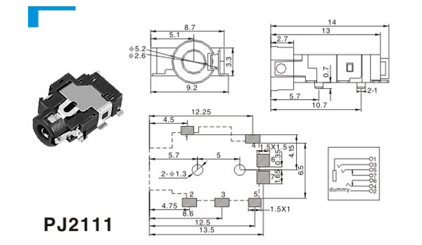 分類(lèi):2.5(SMT)耳機插座